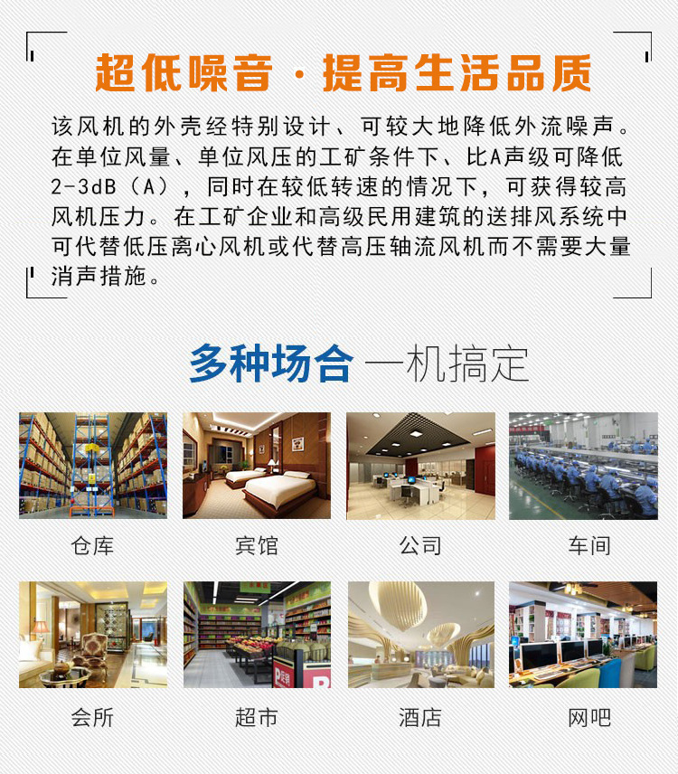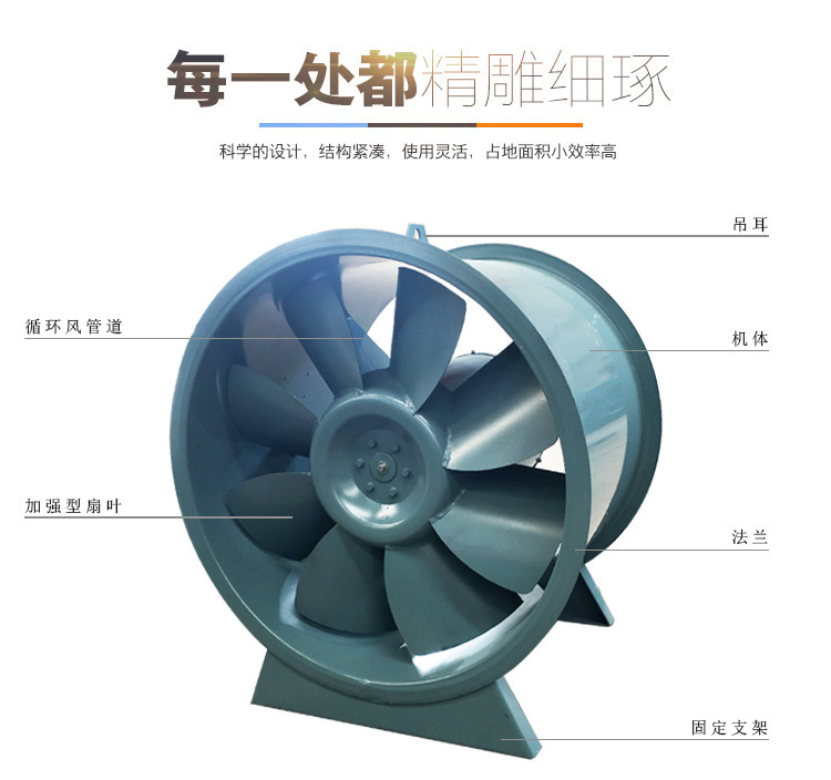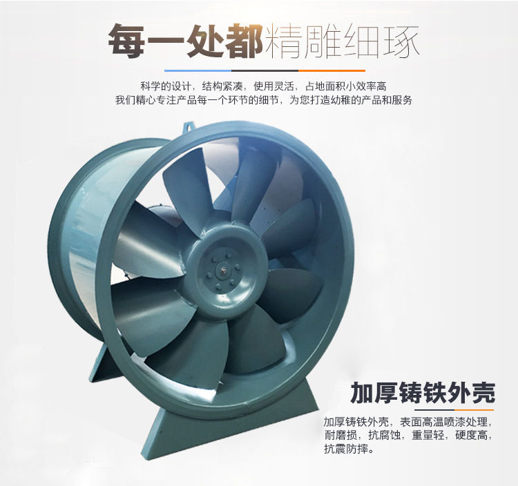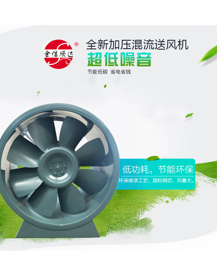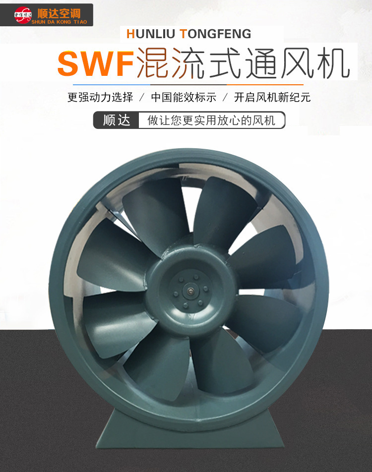 混流(斜流)風機,風壓系數比軸流風機高,流量系數比離心風機大,用在風壓和流量都“不大不小”的場合。它填補了軸流風機和離心風機之間的空白。同時具備安裝簡單方便的特點。